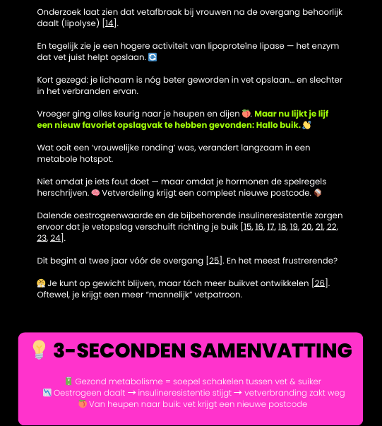 Geen medische muur van tekst, maar uitleg die ik nu al begrijp – ook al ben ik nog niet in de menopauze.